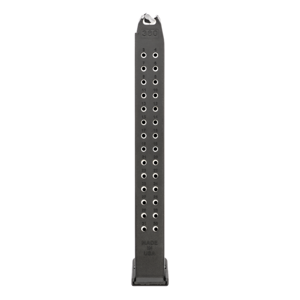 CARREGADOR 32 TIROS, CALIBRE .380, GLOCK, G25, POLIMERO, PRETO, PROMAG, GLK-A26, USA