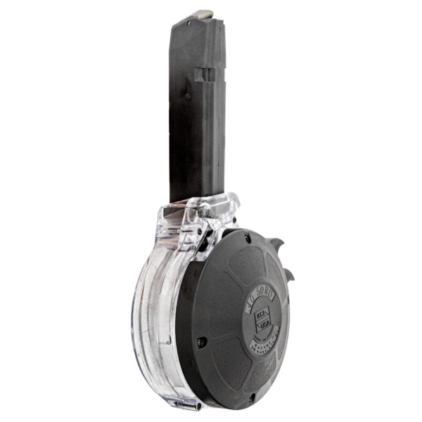 CARREGADOR 50 TIROS, DRUM, CALIBRE .40 S&W, GLOCK, G22/35, POLIMERO, TRANSPARENTE, KCI, KCI-MZ028, KOREA