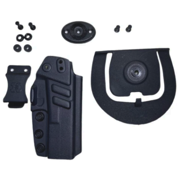 - Porte Ostensivo (OWB): Acompanha um suporte tipo “paddle” para uso externo no cinto, ideal para treinamentos ou situações onde a arma fica visível.